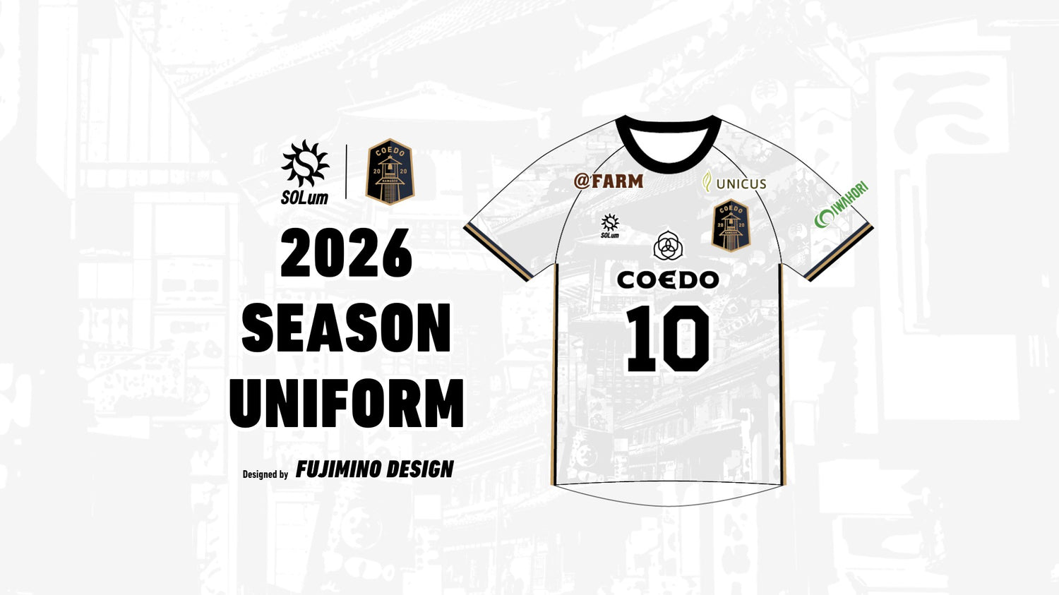 COEDO KAWAGOE F.Cはクラブ創設以来のホームタウンである埼玉県川越市と共に、来季となる2026シーズンも熱く戦い抜き、フットボールクラブをハブに地域にコミットし、地域を巻き込みながら、必ずや関東1部(J5相当)への昇格を掴み取るという強い意志と覚悟をデザインにこめ、川越市を代表する様々な観光資源や地元を象徴するものをイラスト調にして、ユニフォームに表現。